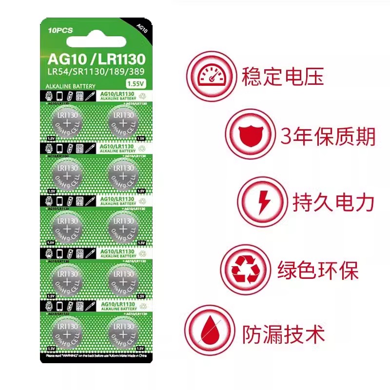 LR1130纽扣电池LR44 AG10 LR1131 LR54 389 1.5V玩具电子手表计算台历防盗器助听器手电筒电子大容量圆形通用