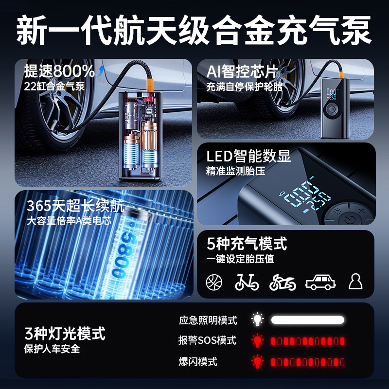 凌匠X5多功能SUV车载充气泵双缸高压大功率电动汽车用轮胎打气泵