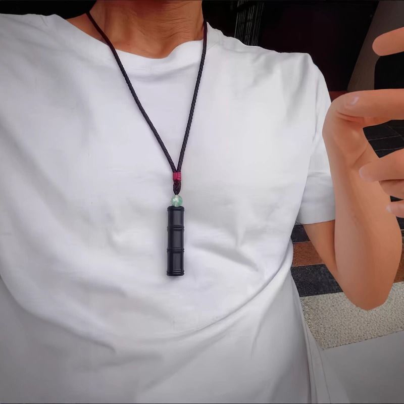 黑檀木竹节空心吊坠护身符保护套可打开装楞严咒平安符管项链挂件