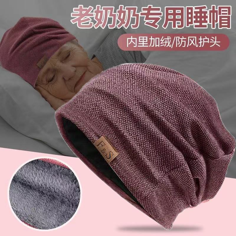 加绒秋冬的帽子女化疗后女士光头帽冬空调睡帽女夏季薄纯棉月子帽