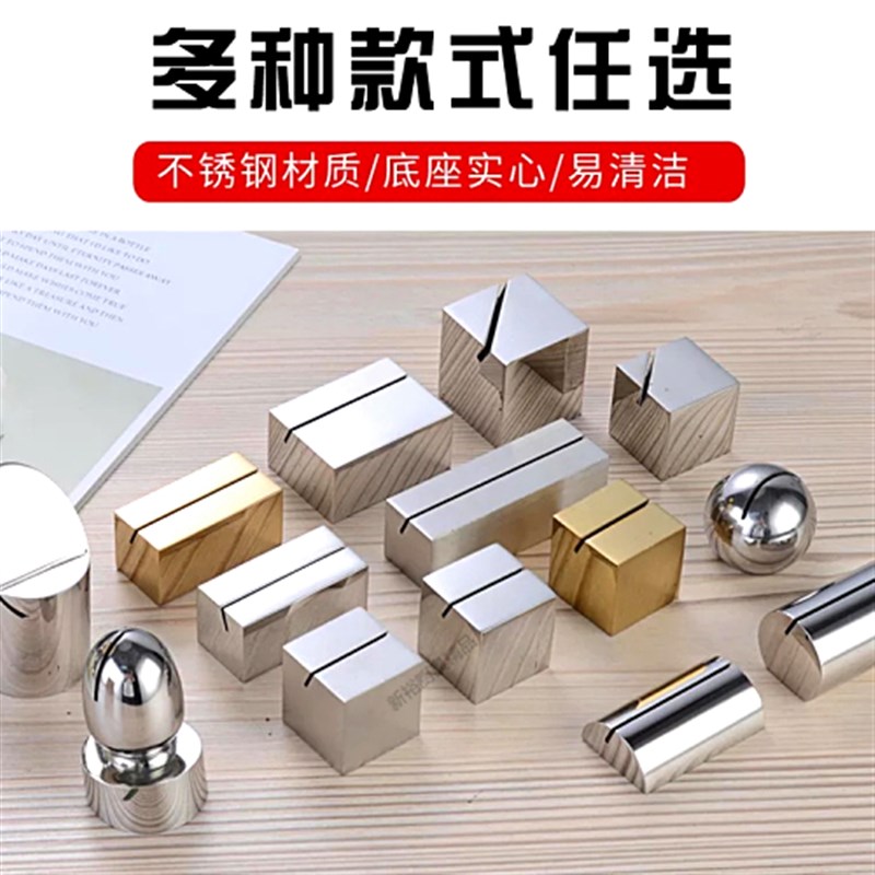 实心不锈钢名片座斜口台号牌餐z牌座菜单夹卡片支架蛋糕价格牌底