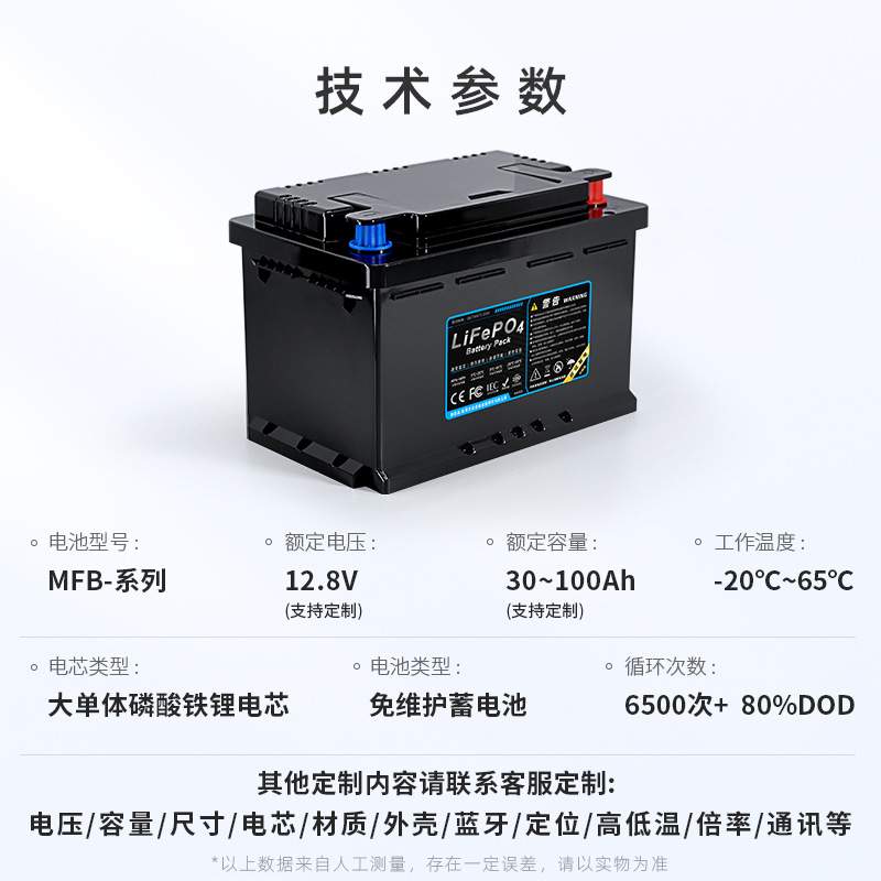 汽车启动锂电池磷酸铁锂电瓶12V100Ah启停12伏工业专用电池高容量