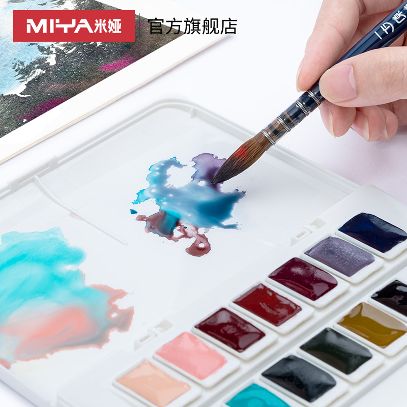 米娅固体水彩颜料一方原颜艺术家级盒装12色24色36色安全无毒可水洗初学者学生美术专用画材绘画临摹水彩颜料