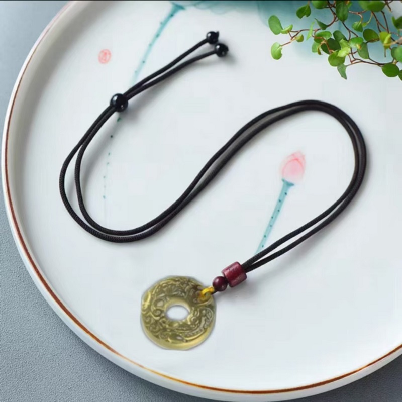 普陀山黑曜石无事牌吊坠女天然护身符项链平安符送男朋友的礼物