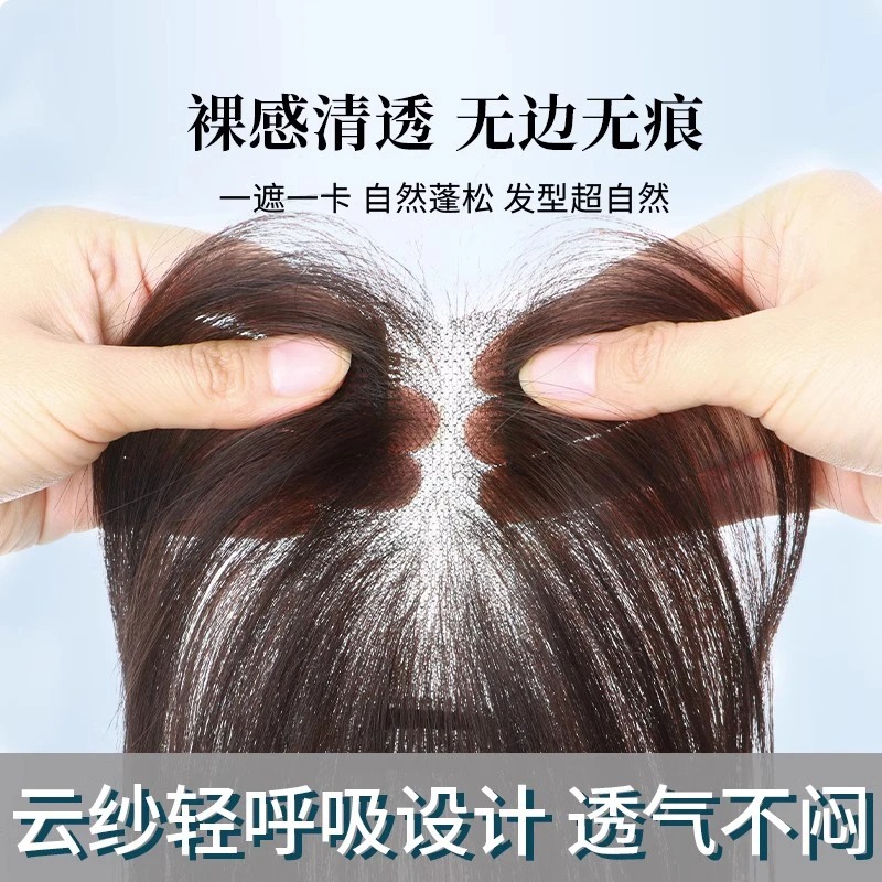 云轻纱假发片增发量蓬松女头顶全真发高颅顶一片式补发片刘海前额