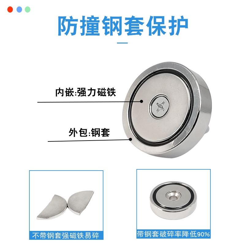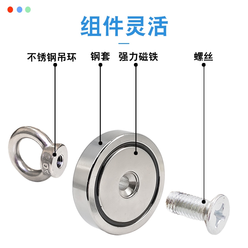 强力磁铁打捞强磁高强度挂钩圆形吸铁石吊环吸盘固定器吸力磁力