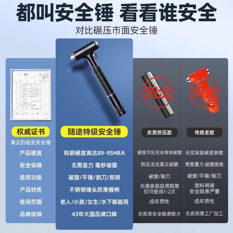 汽车安全锤多功能四合一逃生锤车载内用车窗玻璃破窗神器带割刀救