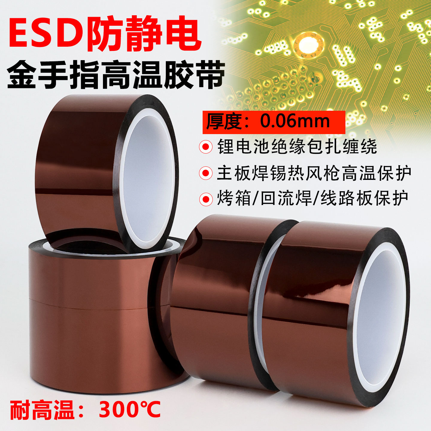 ESD防静电胶带金手指胶带 KAPTON PI茶色耐高温胶带 线路板防焊电池包扎3D打印聚酰亚胺绝缘胶纸 耐高温