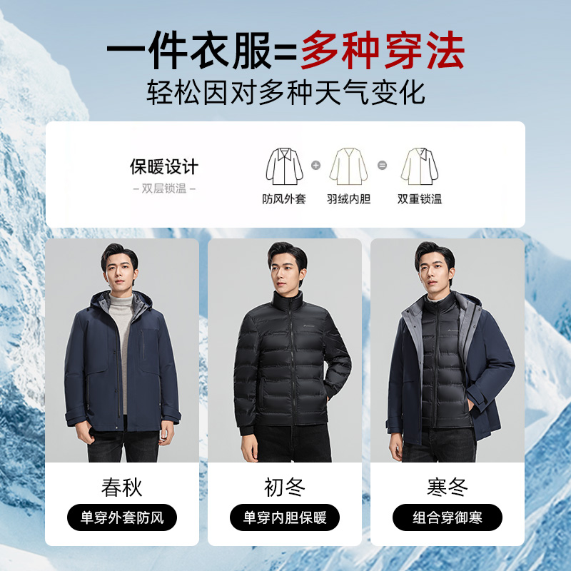 【鹅绒+石墨烯+一衣五穿】罗蒙羽绒服男2025冬季新款可拆内胆外套