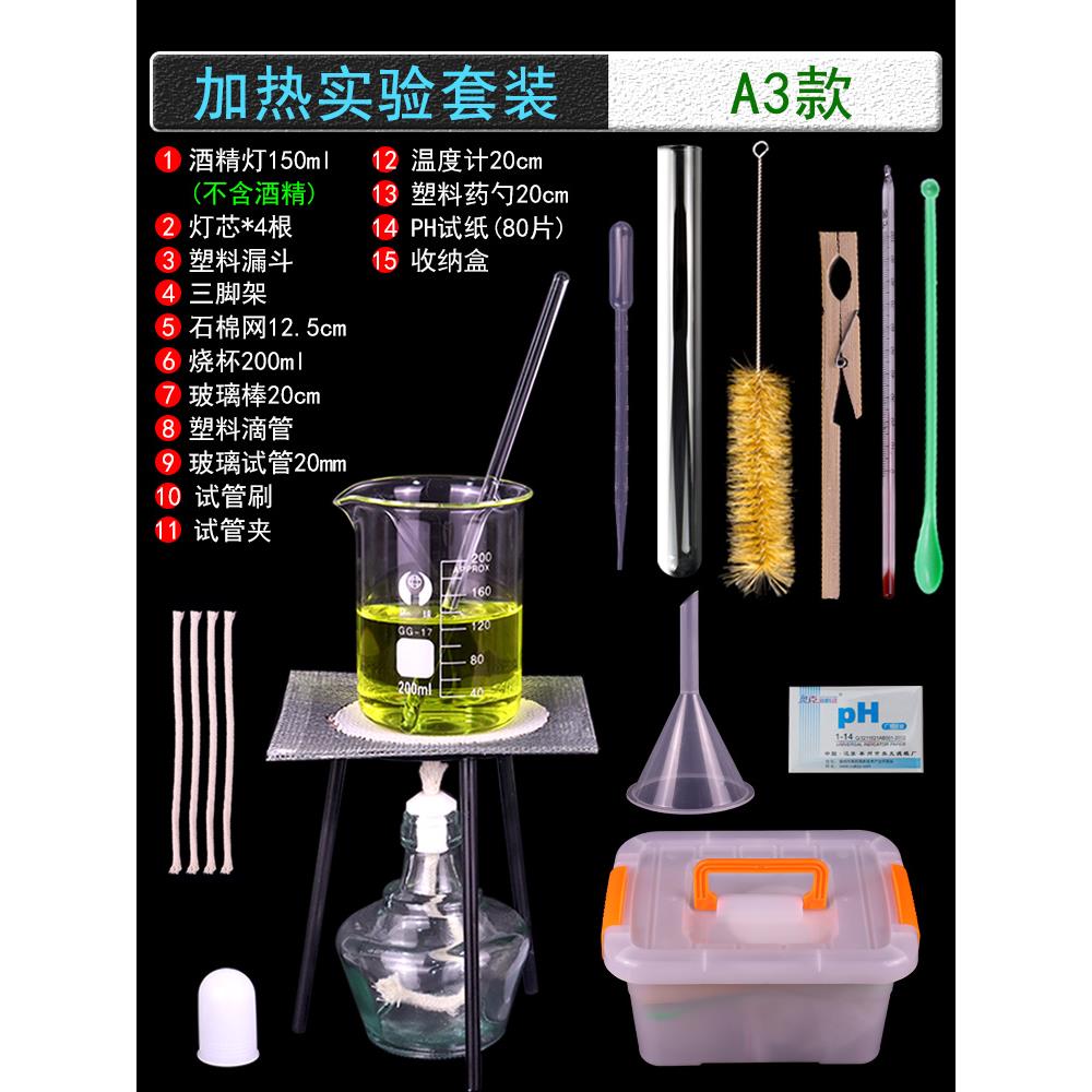 酒精灯加热套装水沸腾了烧杯试管滴管三脚架温度计玻璃棒石棉网全