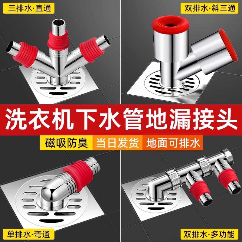 洗衣机排水管地漏接头二合一下水管道接口专用三头通用防臭防溢水