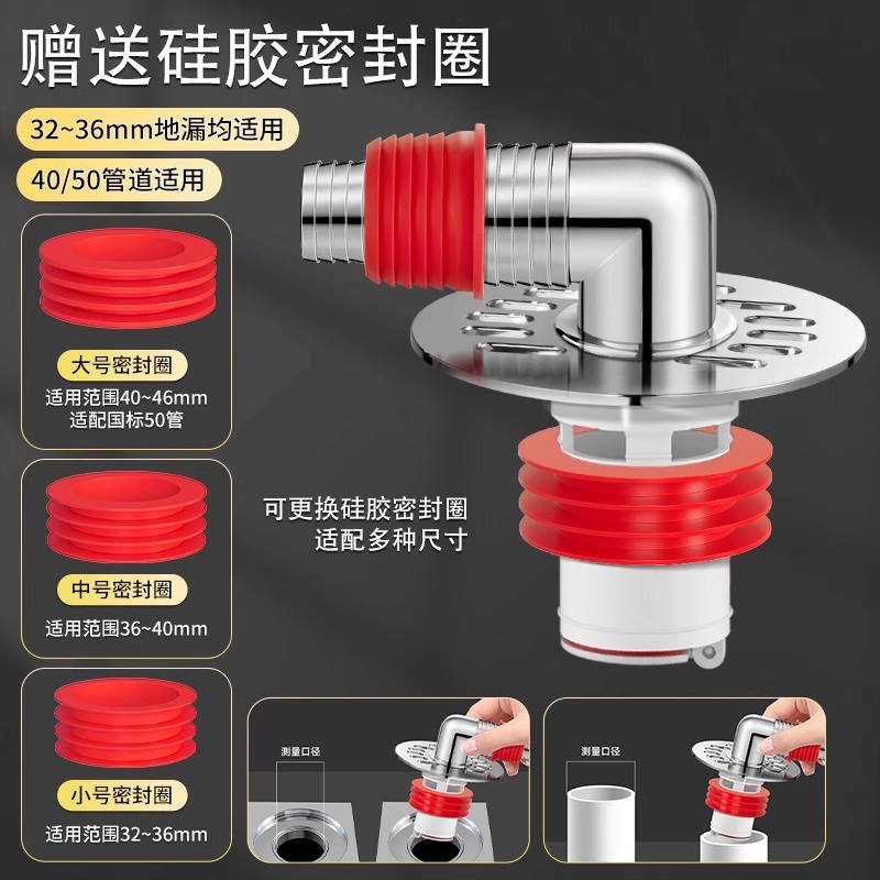 洗衣机下水管地漏专用接头50排水防臭反臭防溢水密封圈塞接口弯头