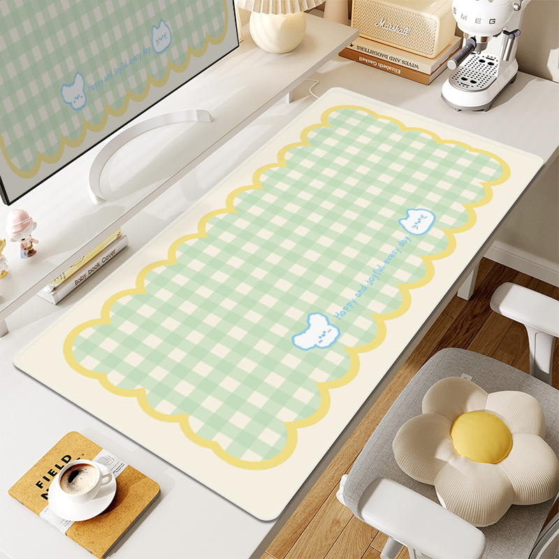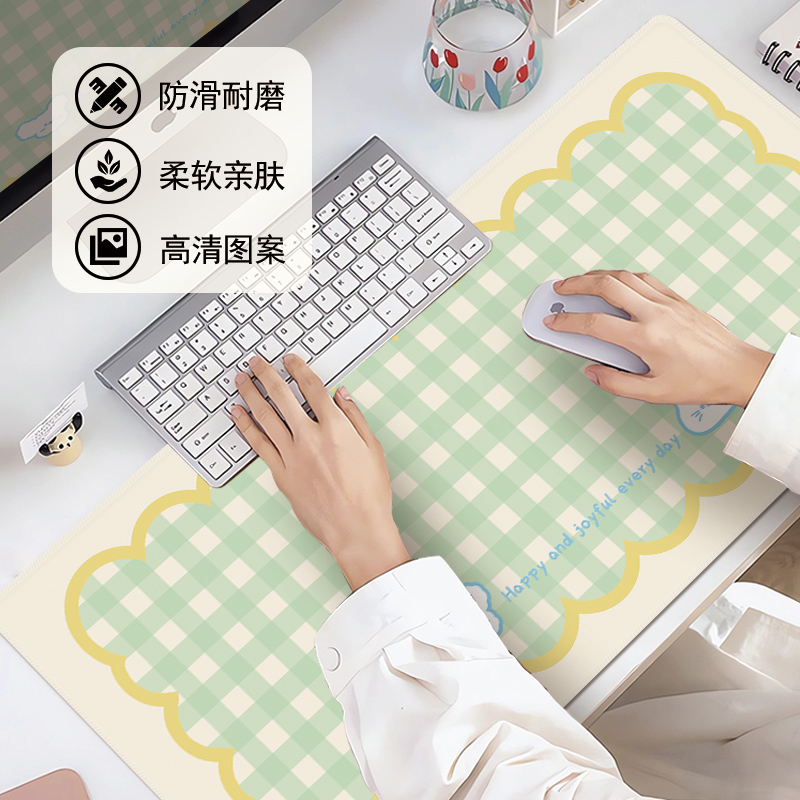 INS风格子鼠标垫超大女生办公工位电脑防滑键盘垫家用学生学习垫