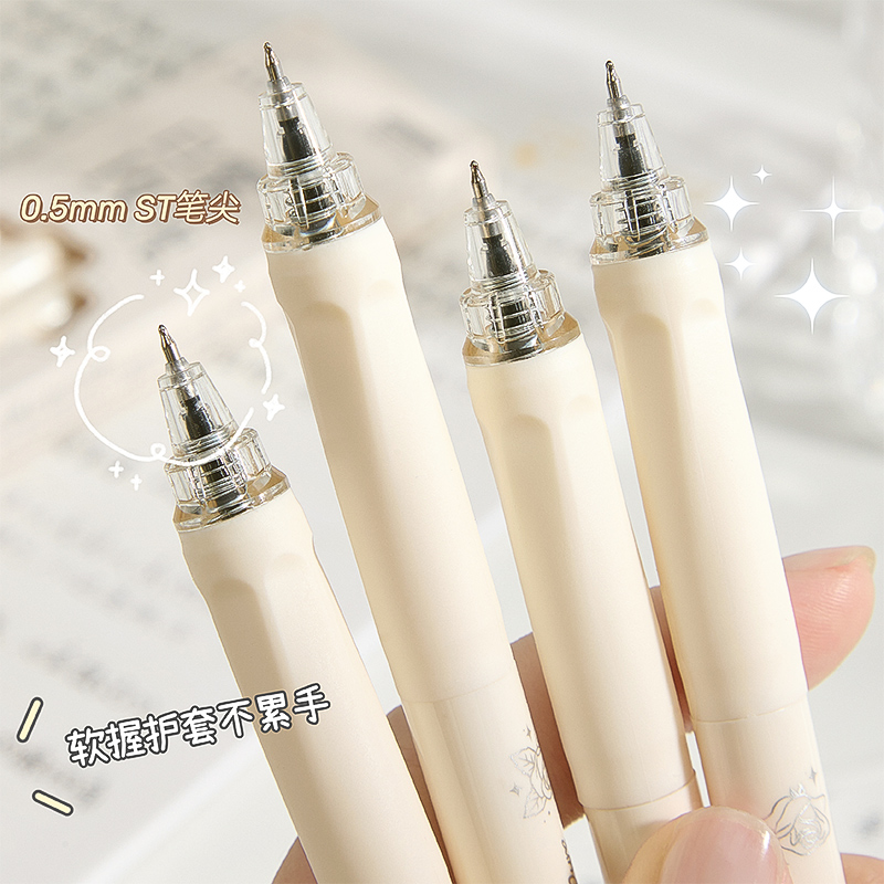 白雾按动中性笔ST笔头玫瑰中性笔简约签字考试中学生高颜值速干刷题笔学生专用黑色水笔初中生小学生圆珠笔