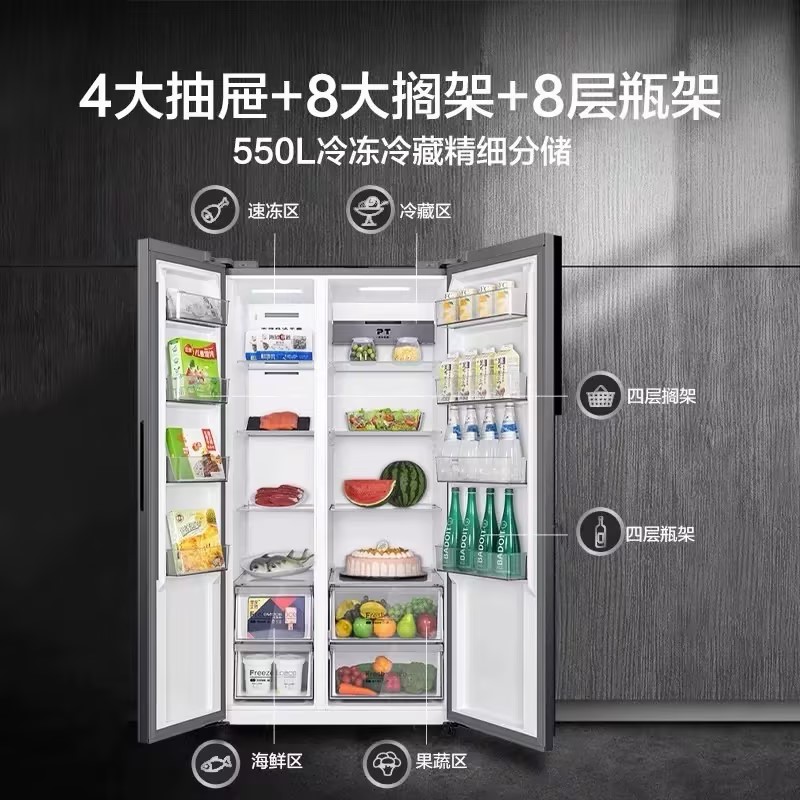 美的550L大容量智能家用电冰箱对开双开门无霜保鲜无霜一级变频