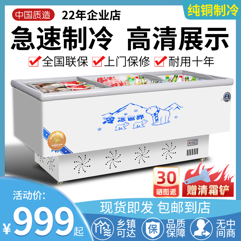 商用冰柜冰箱冷冻展示柜冷藏岛柜大容量冷柜双温保鲜玻璃卧式烧烤