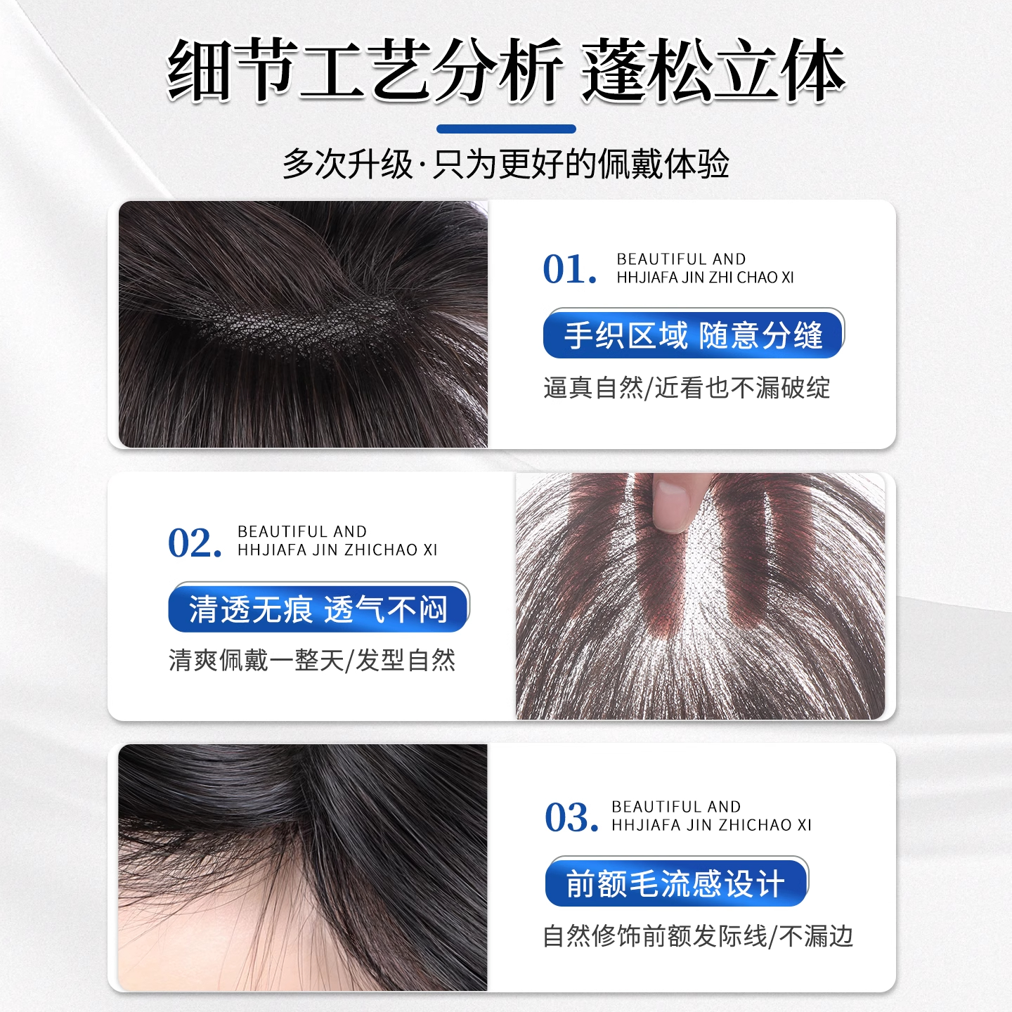 轻薄无痕期桃假发女片头顶蓬松增发量真发遮白发高颅顶刘海补发