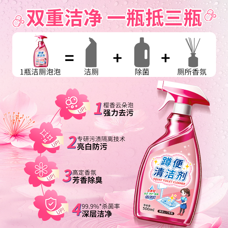 花王马桶清洁剂免刷洁厕灵除臭消毒祛污垢卫生间清洁神器500ml