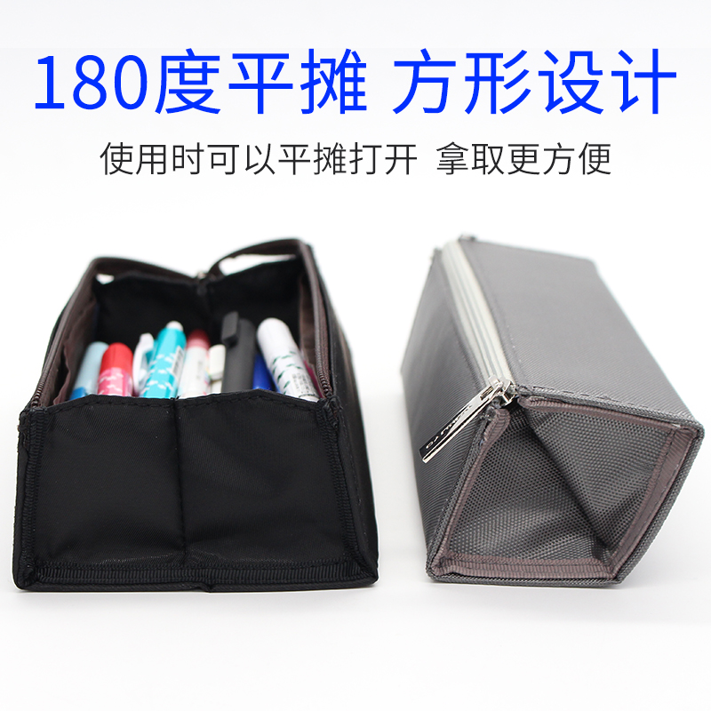 日本笔袋一米新纯方形对开式扩展带提手学生学习文具盒铅笔大容量