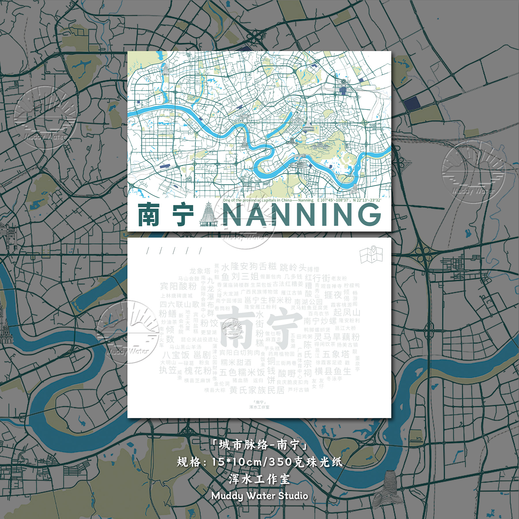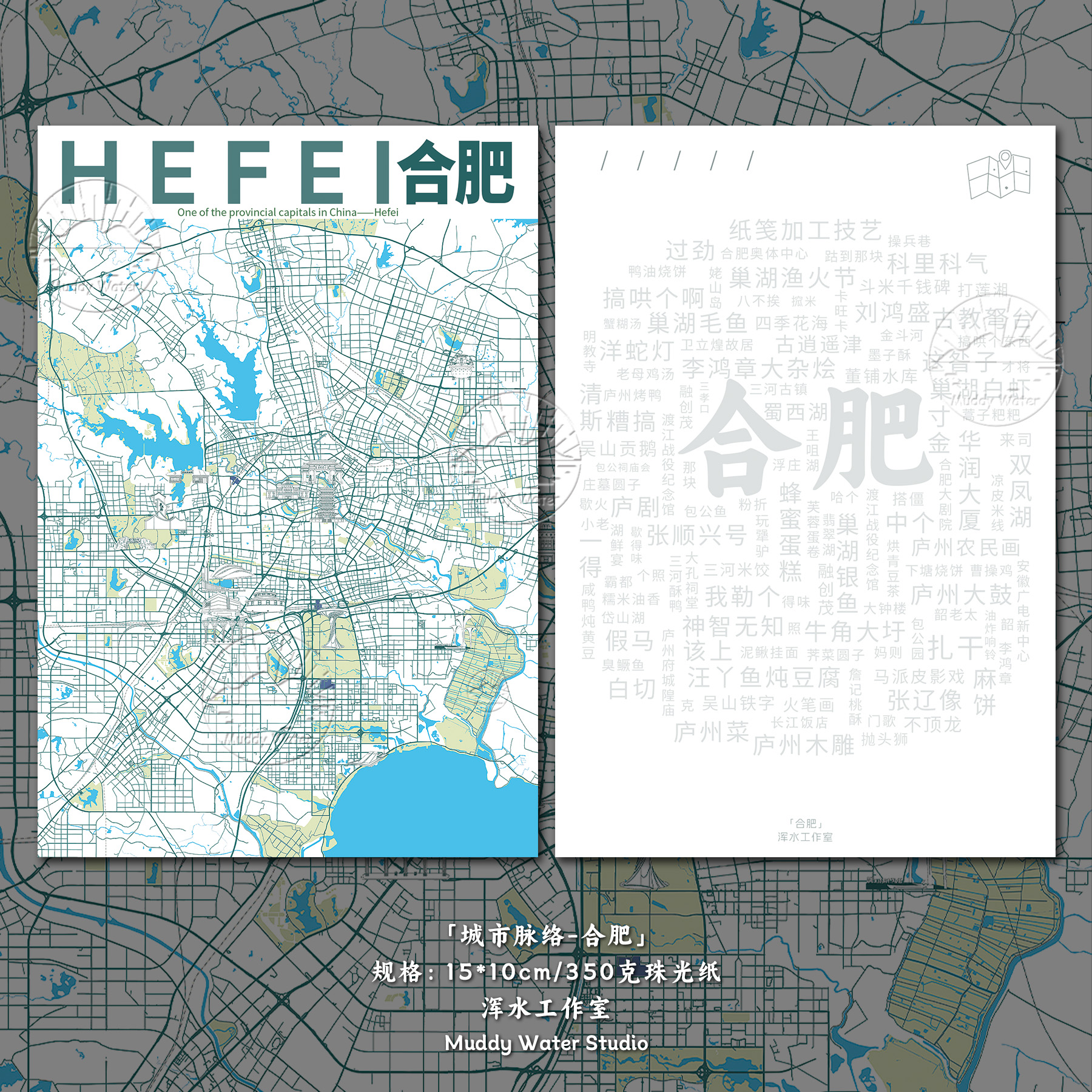 「城市脉络-合肥」原创地图创意明信片插画高级文艺旅游贺卡礼物