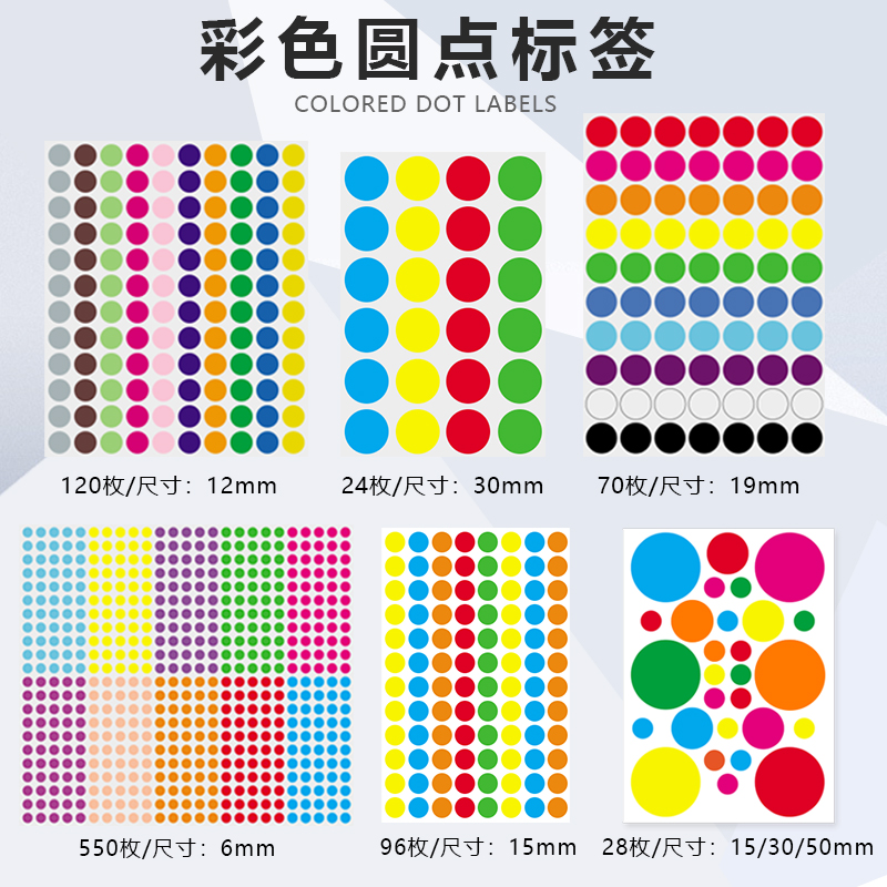 圆点贴纸幼儿园空白可手写彩色波点标签圆形自粘性封口不干胶帖纸