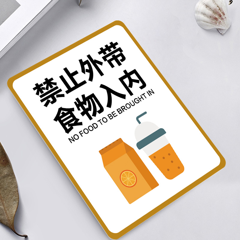 禁止外带食物入内指示牌亚克力谢绝自带酒水啤酒提示牌饮品奶茶店外食莫入酒吧餐厅咖啡馆警示标识牌定制订制