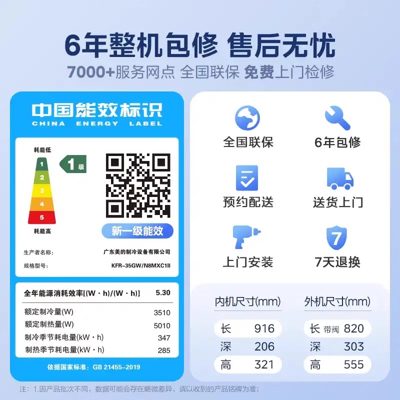 美的空调酷省电Pro大1匹1.5匹一级能效变频冷暖家用挂机官方正品