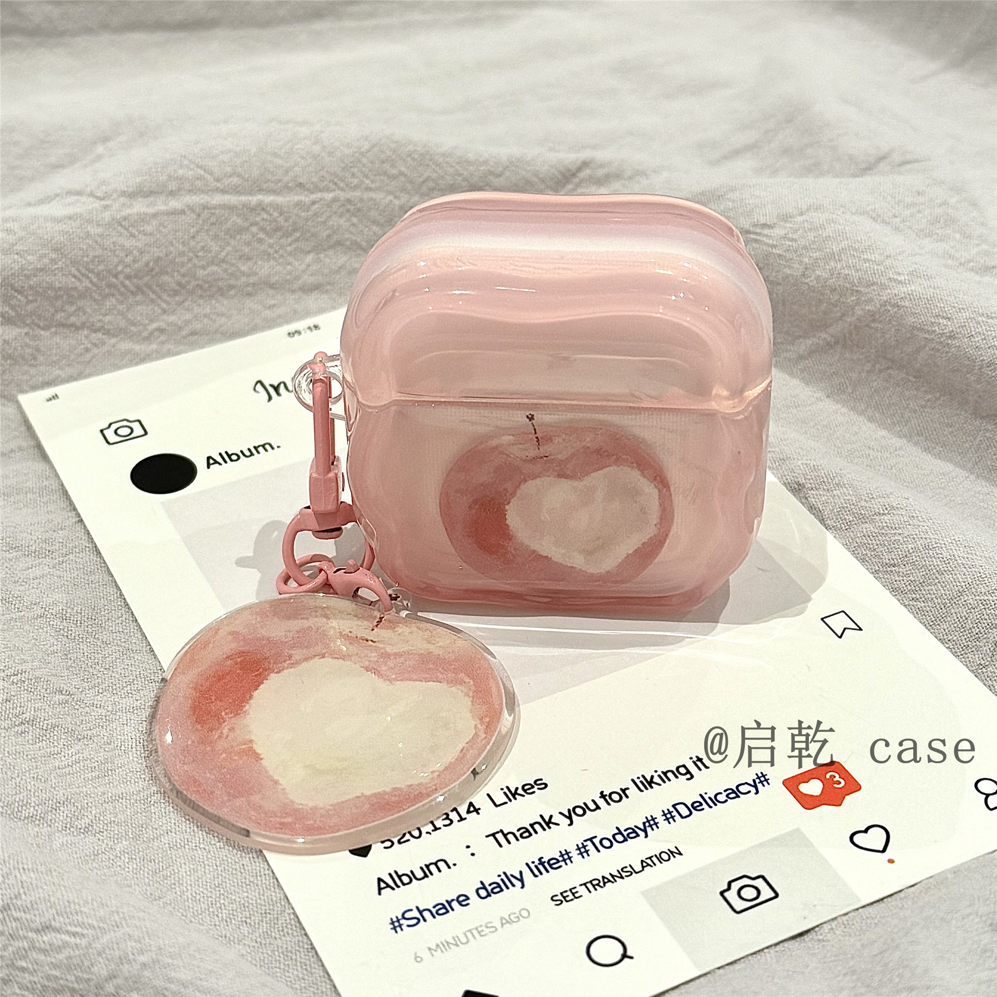 启乾 油画粉色爱心苹果挂件Airpods4/3耳机保护壳套2pro二三代新款适用苹果无线蓝牙硅胶软壳少女心小众日韩