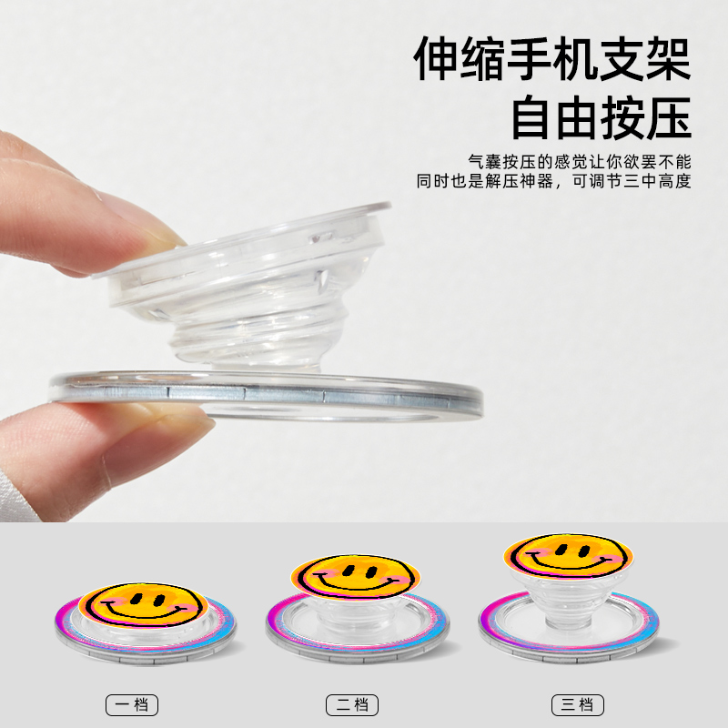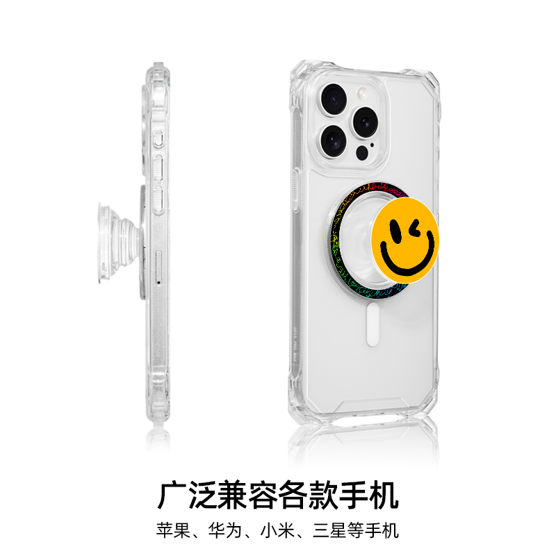 笑脸手机磁吸支架气囊高级折叠桌面便携伸缩可调节追剧时尚女款网红懒人创意配件可爱背贴吸附潮牌防摔多功能