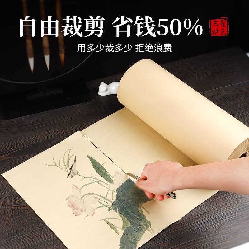速发宣纸练字加厚长卷100米仿古百米生宣纸卷装黄色半生半熟国画
