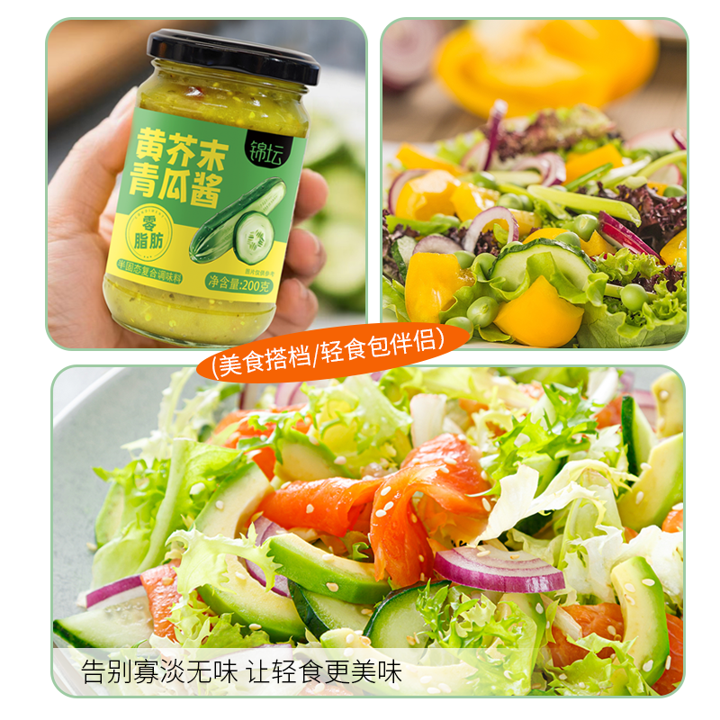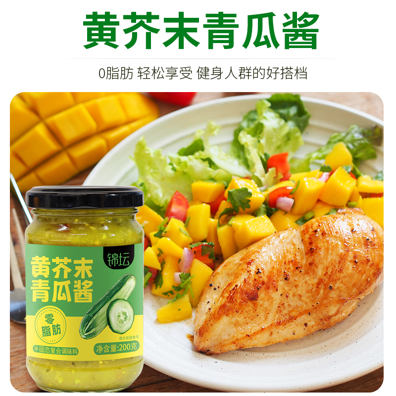 黄芥末青瓜酱蔬菜沙拉三明治面包伴侣汉堡酱黄瓜0脂肪黄瓜酱200g