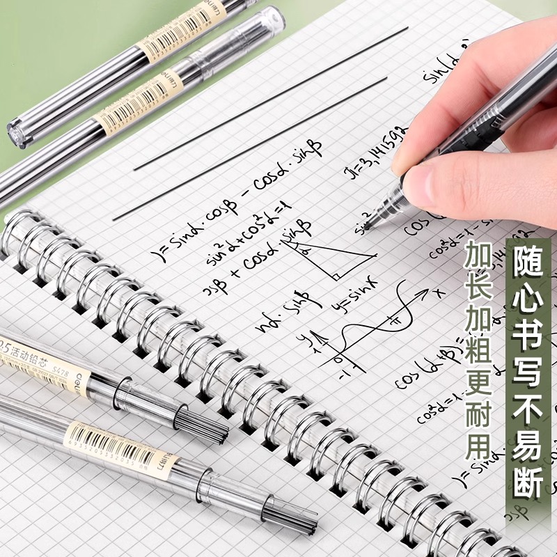 得力自动铅笔替换芯小学生专用0.5mm大容量活动铅芯hb不易断芯0.7mm自动笔铅芯细芯黑色通用适配石墨铅芯