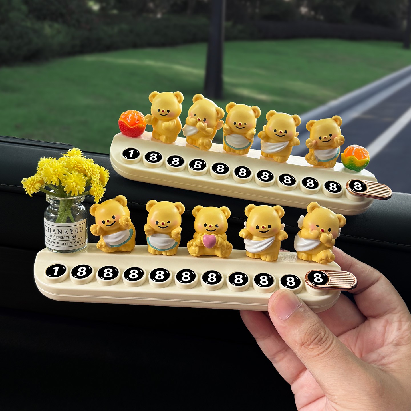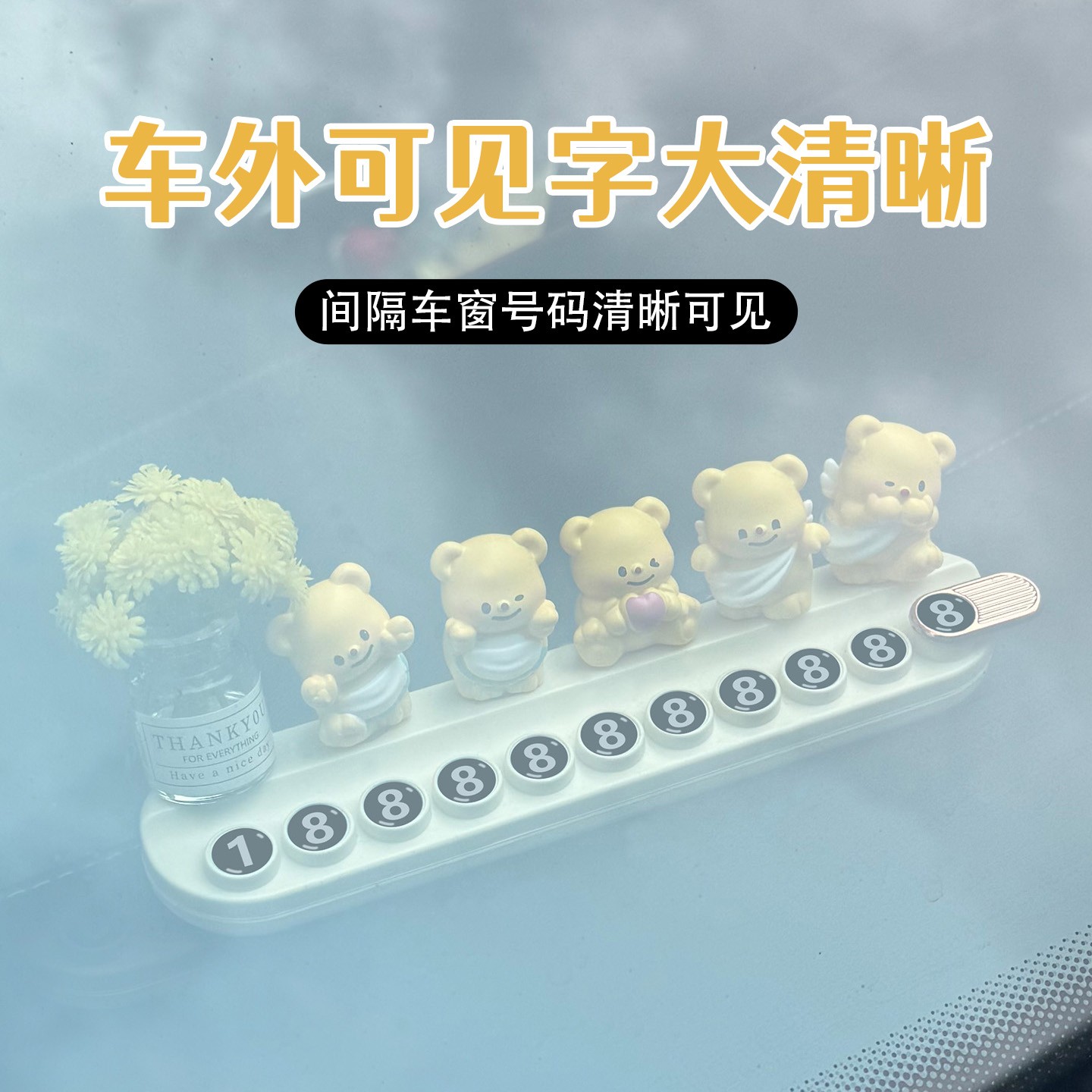 2025新款黄油小熊挪车电话牌临时停车可爱车上电话移车牌车内摆件