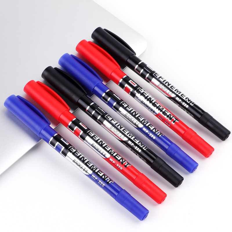 12支装BAOKE宝克MP-220双头油性记号笔 彩色记号笔小双头勾线笔标记笔绘画涂色难擦细笔