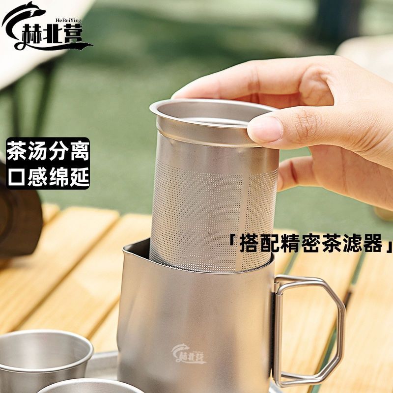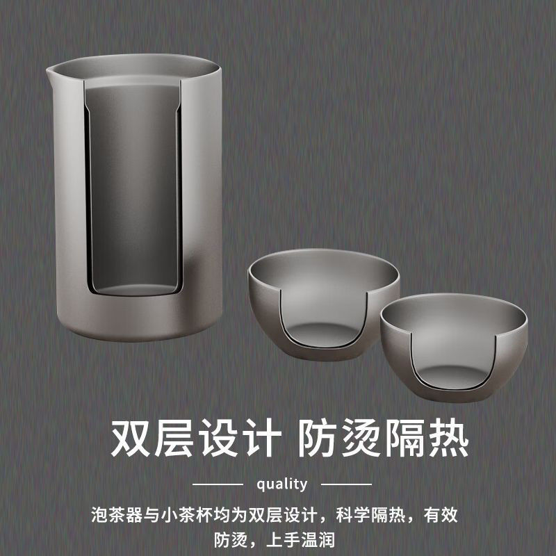 户外不锈钢露营茶具快客杯钛化合金茶水分离泡茶器旅行套装中国风