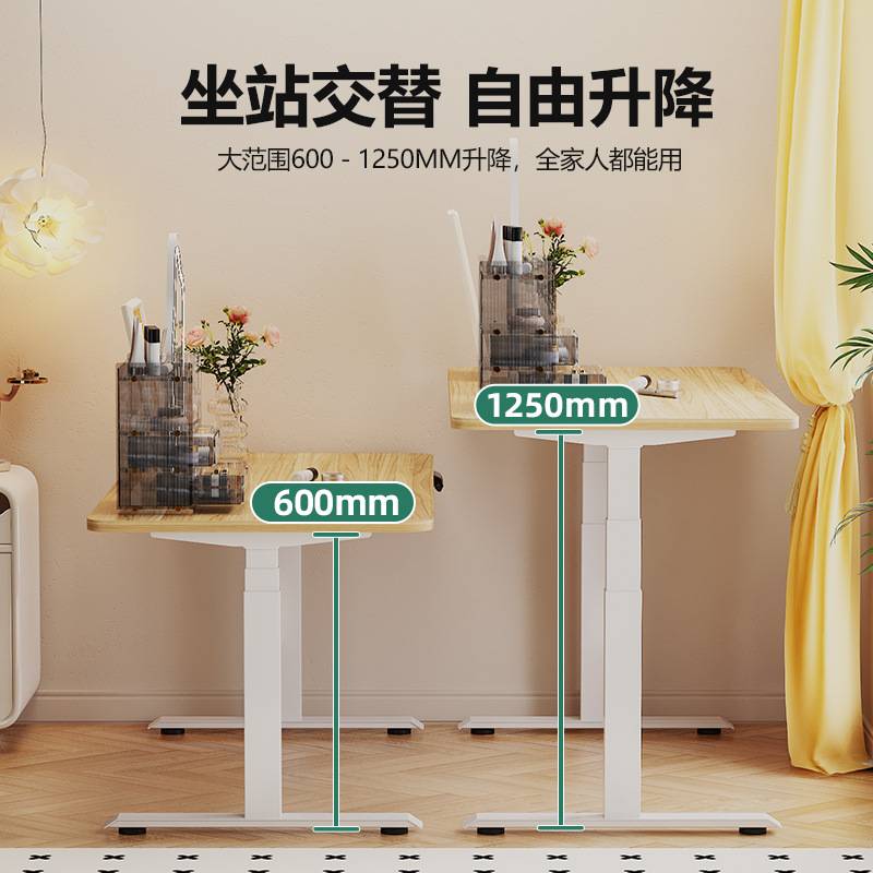 双电机三节升降桌坐站交替升降电脑桌高度可调电动升降办公桌