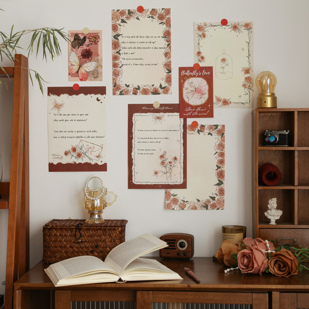 浪漫玫瑰蝴蝶花边拍纸本李小熙系列拍纸本复古梦幻学生记事本学习摘抄本草稿本便签本空白信纸