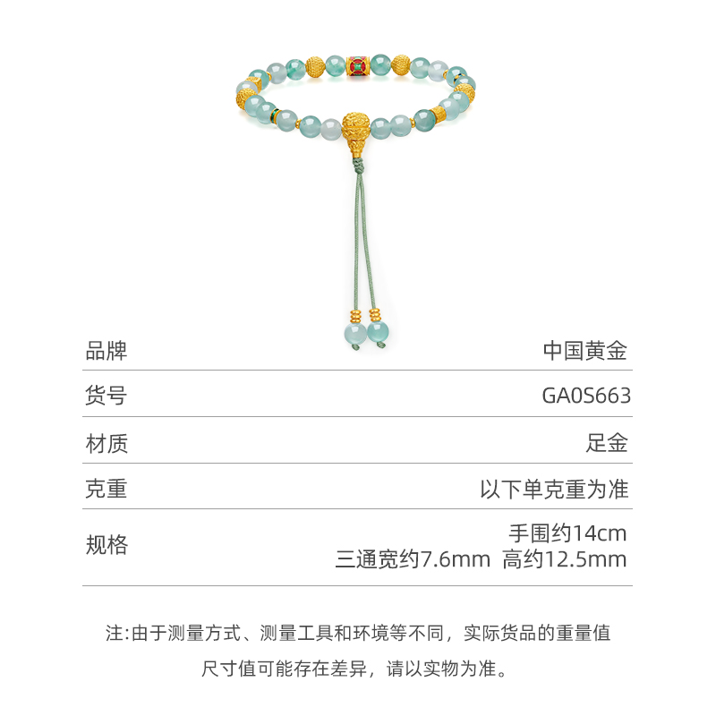 【中国黄金官方店】翠金流韵古法手串新品百搭气质足金首饰送礼