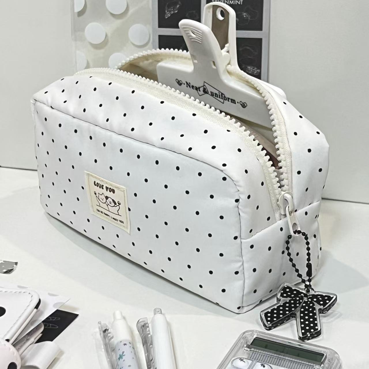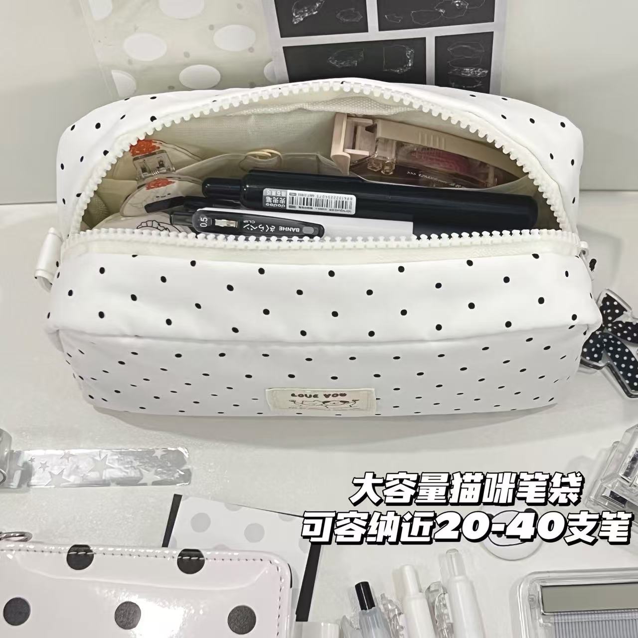 简约黑色波点墩墩包笔袋初中女生ins风高颜值大容量多隔层文具袋