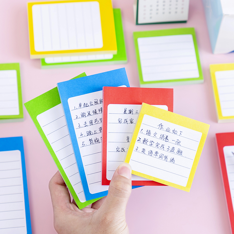 便利贴学生用高颜值错题便利贴有粘性办公室专用标签贴可爱大号粘性强横线标签贴留言板白色小本子小清新彩色