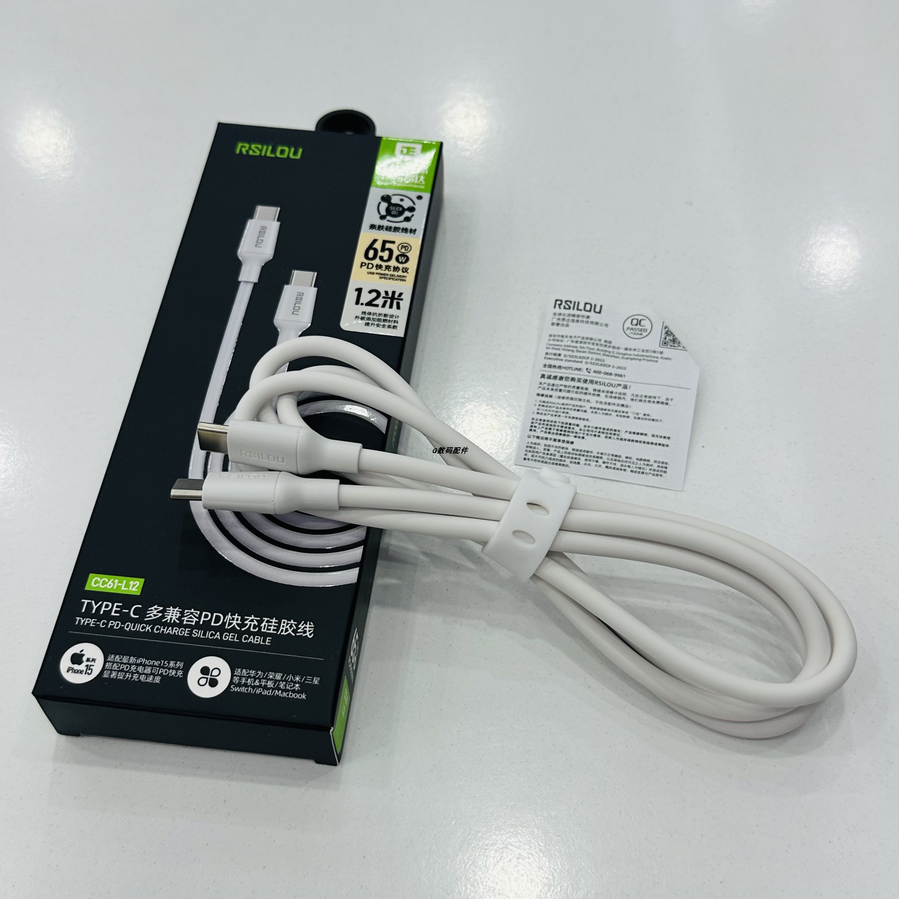 阿思络CC61-L12多兼容快充硅胶线适用于15promax抗折断白色65w安卓手机闪充ipad耐用数据线macbook