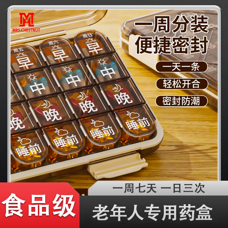 日本药盒一周七天药品分装盒分药器便携式老年人吃药提醒盒子丸片