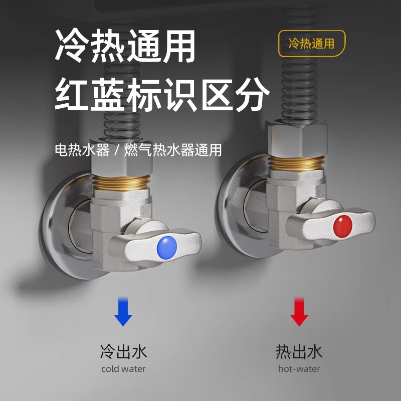 全铜球阀大流量全开热水器家用三角阀冷热水开关4分通用加长球形