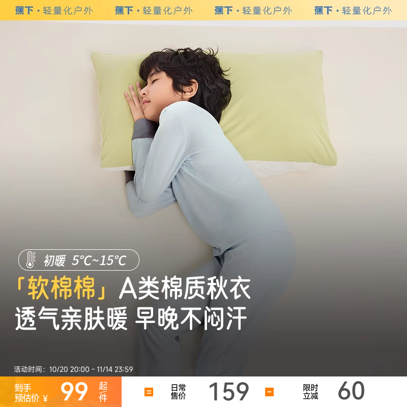 蕉下儿童抗菌棉质保暖内衣套装秋冬家居女童亲肤秋衣秋裤睡衣