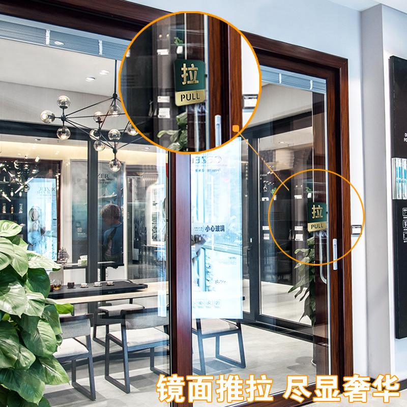 推拉门贴亚克力双层镜面立体创意酒店大门标识牌商场定制饭店拉推左右移动标示贴纸标志牌玻璃门温馨提示牌