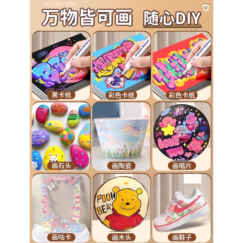 晨光丙烯马克笔学生美术专用不透色可叠色彩笔儿童幼儿无毒水彩笔