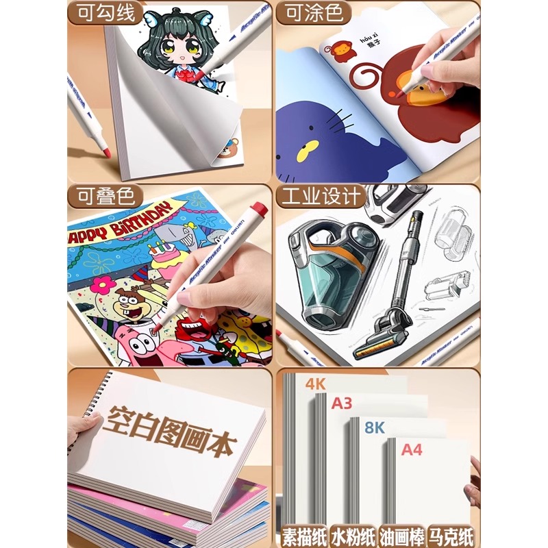直液式丙烯马克笔48色儿童美术专用小学生用马克笔diy可叠色软头丙烯笔可水洗安全水彩笔咕卡笔24色36画画笔