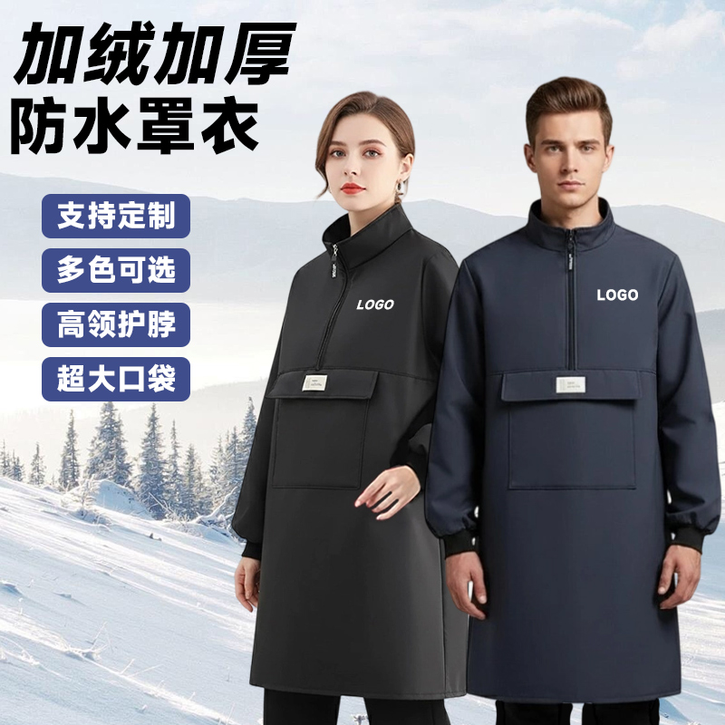 新款围裙厨房家用防水加厚耐脏长袖加绒保暖工作服防油外套罩衣
