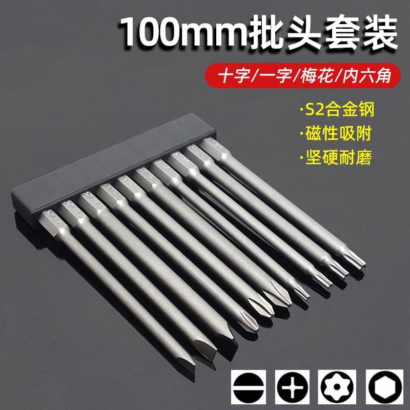 磁性批头套装十字一字梅花内六角异型批头组合装S2长杆批头螺丝批
