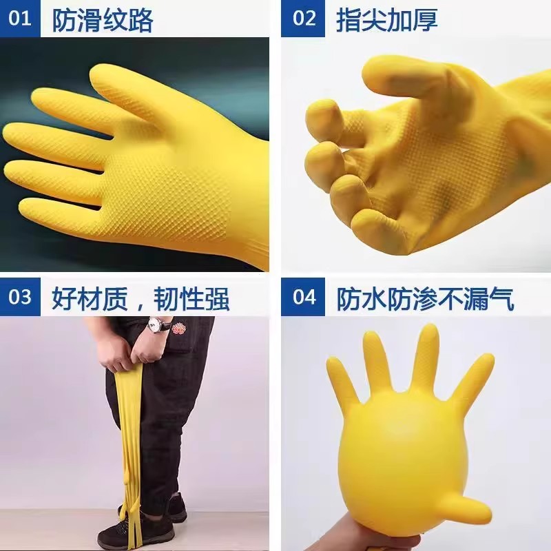 牛筋乳胶手套家务洗碗厨房耐用胶皮加厚橡胶硅胶劳保耐磨防水工作
